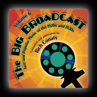 The sixth in Rivermont's popular Big Broadcast series, this CD features a variety of excellent jazz, dance band, and vocal recordings of the 1920s and 1930s selected by Rich Conaty, host of the long-running vintage music radio program The Big Broadcast heard Sunday evenings on WFUV-FM in New York City. Many of these selections are making their first appearance on compact disc, expertly remastered from the best available sources. Conaty provides insightful introductions to each recording in the enclosed 16-page illustrated booklet. Every selection is a stand-out, but highlights in Volume 6 include the very first recording by Tommy and Jimmy Dorsey (with the Scranton Sirens in 1923), a rare vocal by a young Jimmy Stewart from 1931, a brilliant hi-fi recording of Paul Whiteman's Orchestra from 1932, and a live 1932 broadcast by Cab Calloway from New York City. 78 minutes. |